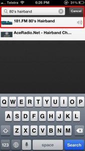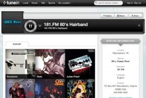 Another way to listen to internet radio through your web browser is to go to Tunein.com, and in this case, again, we will search for “80’s Hairband” in the search bar at the top.